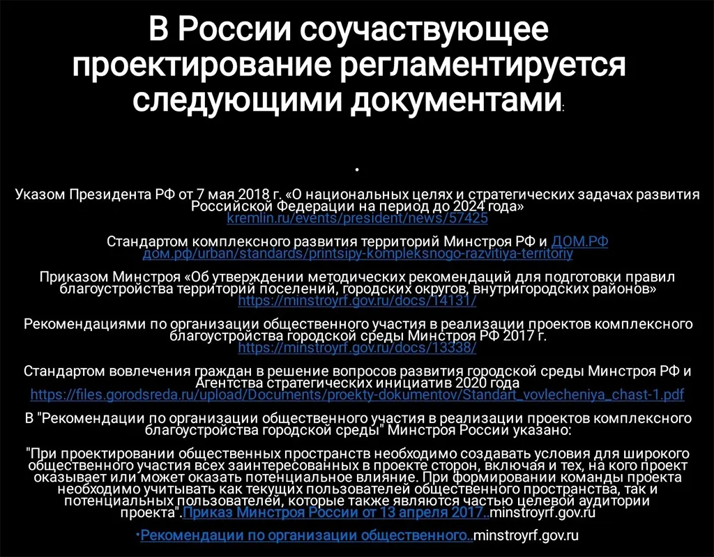 В целом есть пожелание придерживаться рекомендаций Минстроя РФ и на всех этапах работы над этим ключевым общественным пространством применять технологии соучаствующего проектирования с привлечением экспертов, учёных и общественный контроль.